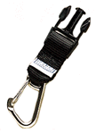 ステンレススチール製のカラビナ。クイックバックルのメス・コネクターが装備されている物と接続が可能です。