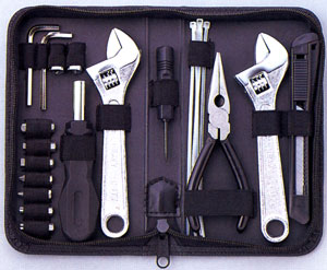 セット内容: スパナレンチ×2 ラジオペンチ×1 カッター×1 丸きり×1 クランプ×1 ラチェットドライバー×1 ドライバーヘッド×7