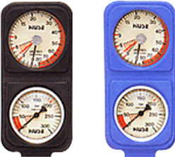 ・残圧計は、耐久性に優れたメタルボディを採用。水深計は、最大深度置針、0点調整機能付きのメタルダイアフラム式です。ドッキングコンパス装着可能。