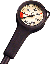 ・新型の小型メタル残圧計ヘッド(53Φ)を使用した残圧計です。リスト式の水深計やダイブコンピュータを使ってのダイビングの際、器材をシンプル&コンパクトにすることができます。