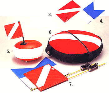 ダイビングフロートカバーと合わせて使用すれば、離れた場所からでも認識しやすい。(ダイビング旗とアルファー旗があります) |