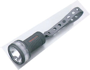 ハロセーム・キセノン豆電球使用。連続使用時間約8時間(東芝アルカリ乾電池使用時)