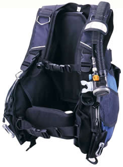また、緊急時には左右のポケットにあるアウトレバーを引く事により、すばやくウエイトをリリースし、安全な浮力を確保します。使用生地は1000デニールコーディラ製で、胸ベルトが付いているので、フィット感が増し、水中バランスも良くなりました。