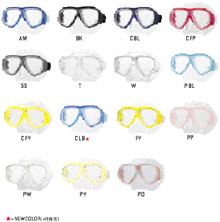 ●TUSAのマスクラインアップの中でも、ひときわライト(重量180g)でコンパクト。ダイバーの個性やセンスを感じさせる、フォトジェニックなデザインです。